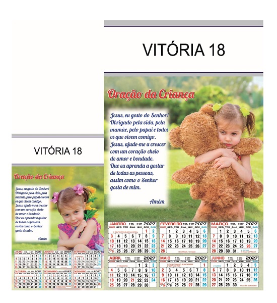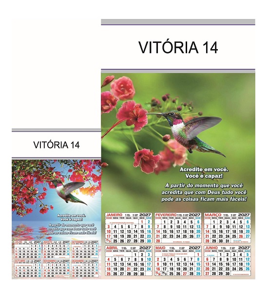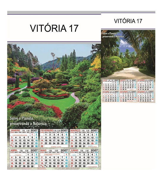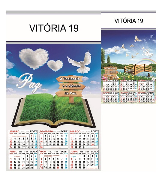 Folhinha 2027 de parede com duas lâminas em papel Couché