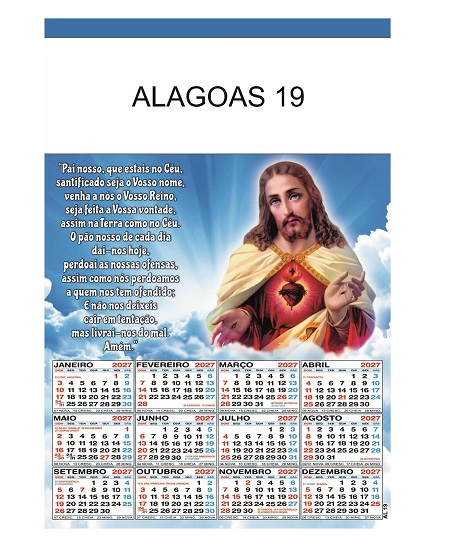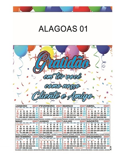 Calendário 2027 de parede Alagoas