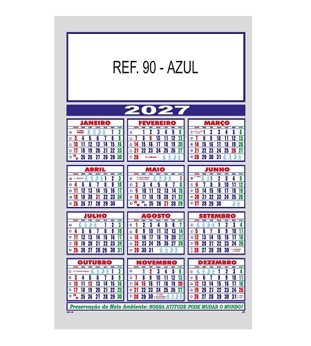 Folhinha 2027 comercial de parede metalizada (material bopp 50 micras)