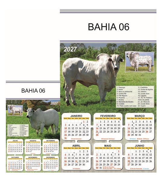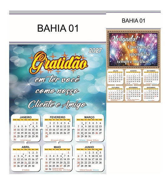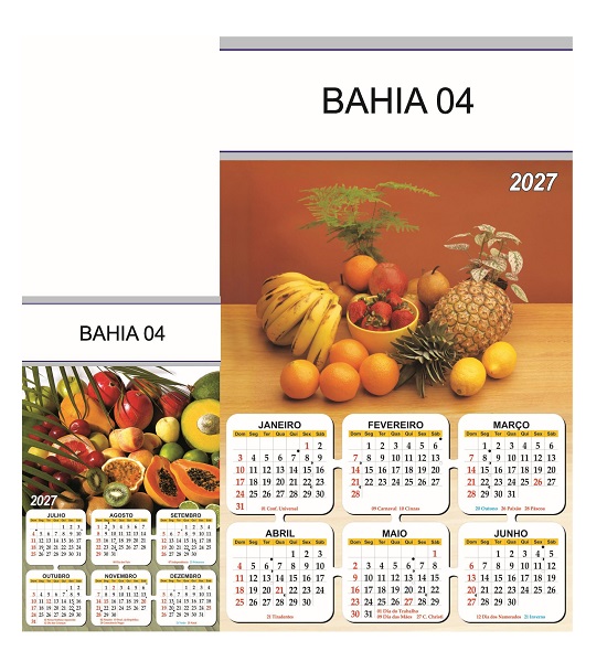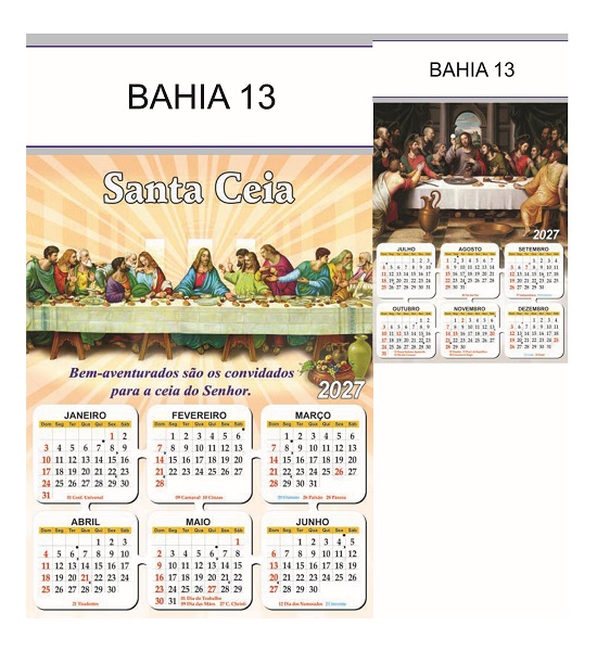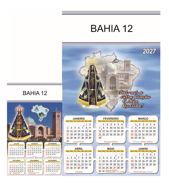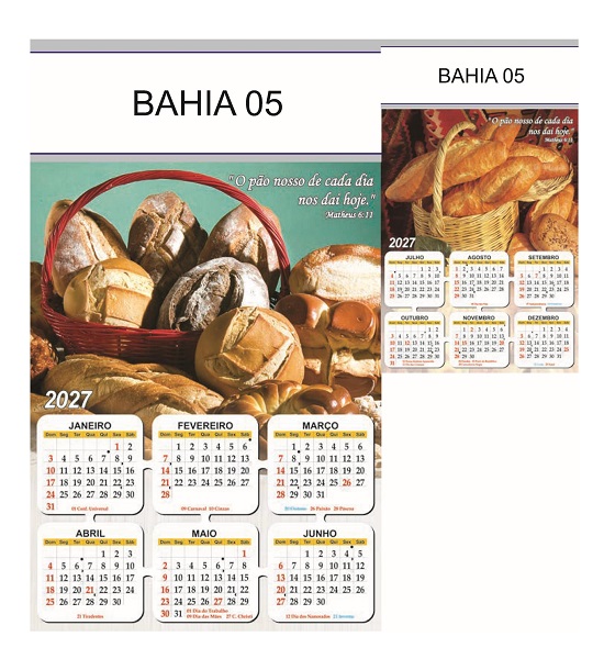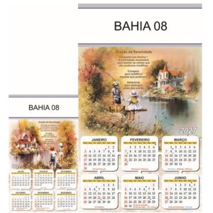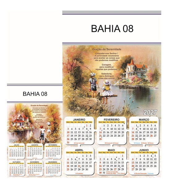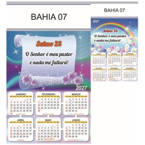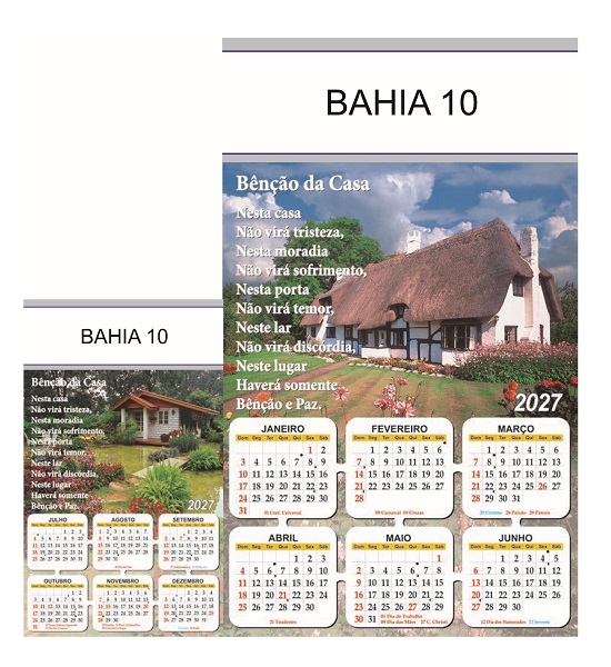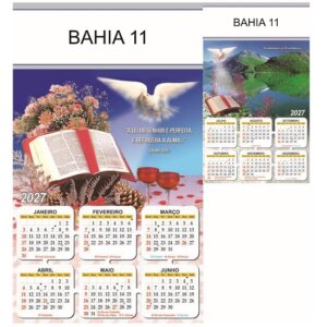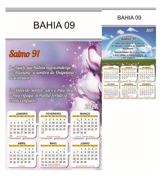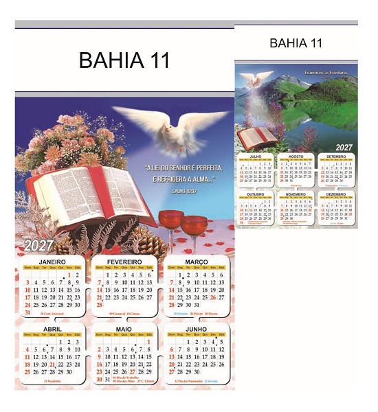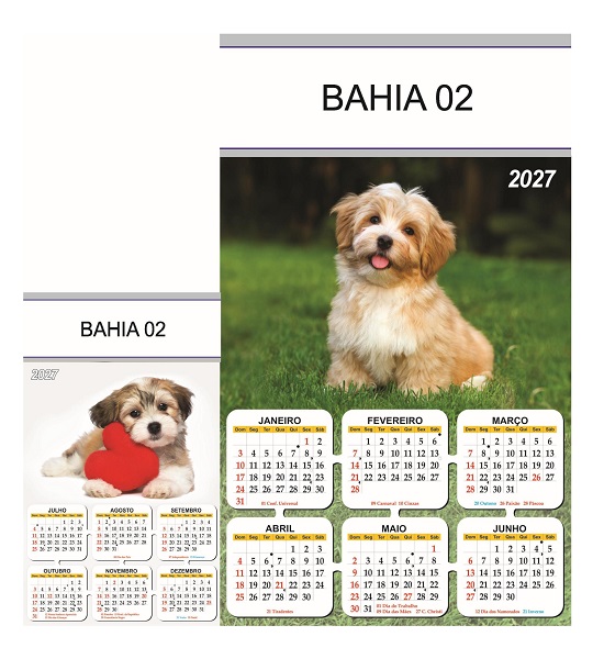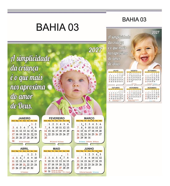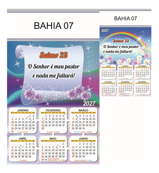 Folhinha 2027 de parede duas lâminas em papel Couchê brilho 90 gramas.