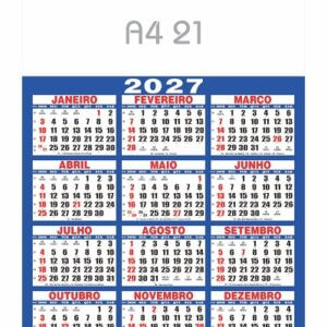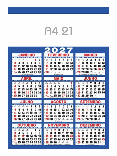 - Folhinha com 01 lâmina (cromo), calendário anual 2027